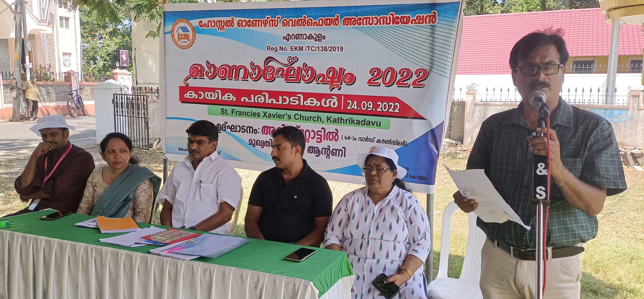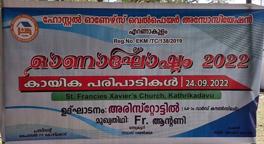 ഹോസ്റ്റൽ ഓണേഴ്സ് വെൽഫെയർ അസോസിയേഷന്റെ നേതൃത്വത്തിൽ 24/9/22 ൽ കതൃകടവ് St. ഫ്രാൻസിസ് സേവിയേഴ്സ് ചർച്ച് ഗ്രൗണ്ടിൽ വച്ച് നടത്തിയ കായിക മൽസരങ്ങൾ. മൽസരങ്ങൾ കൗൺസിലർ അരിസ്റ്റോട്ടിൽ ഉത്ഘാടനം ചെയ്തു. ഹോസ്റ്റൽ ഓണേഴ്സ് വെൽഫെയർ അസോസിയേഷന്റെ നേതൃത്വത്തിൽ 5/9/22 ൽ നടത്തിയ ഓണപ്പൂക്കള മത്സരത്തിന്റെ ഭാഗമായി വിവിധ ഹോസ്റ്റലുകളിൽ ഇട്ട ഓണപ്പൂക്കൾ …